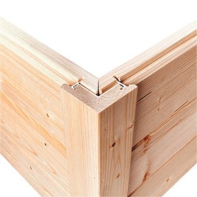 Det är möjligt att välja hörnförbindelser, nämligen den traditionella stugförbindelsen, en hörnstolpe där väggarna faller cirka 4 cm i stolpen, eller ett hörnprofil med järnremsor för extra stabilitet