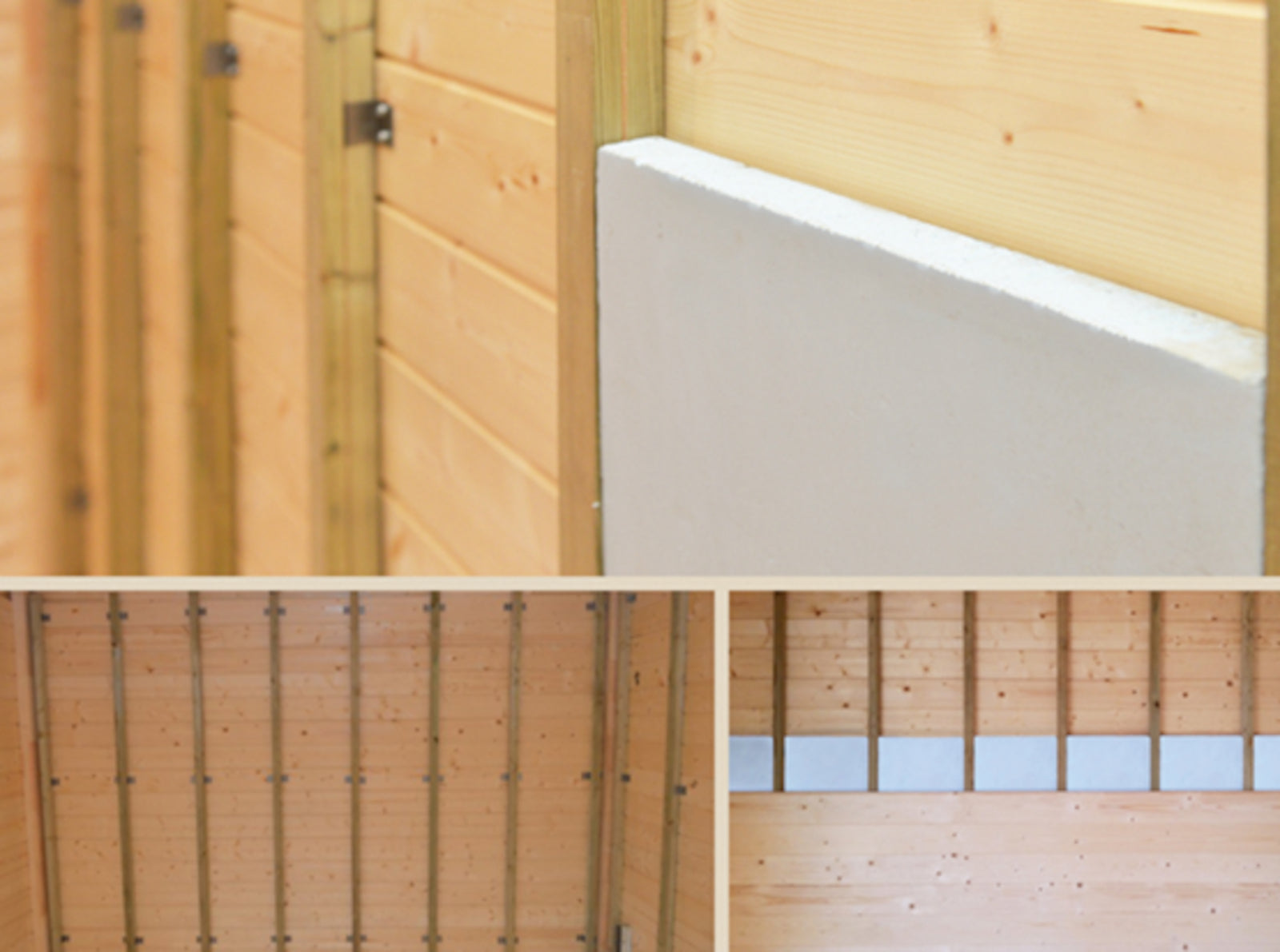 Det är möjligt att isolera både tak, vägg och golv. Vid väggisolering placeras isolering mot basväggen, t.ex. 68 mm, och avslutas sedan på insidan med en 18 mm trävägg. Som isoleringsmaterial används PIR-skum och ångspärrfolie.